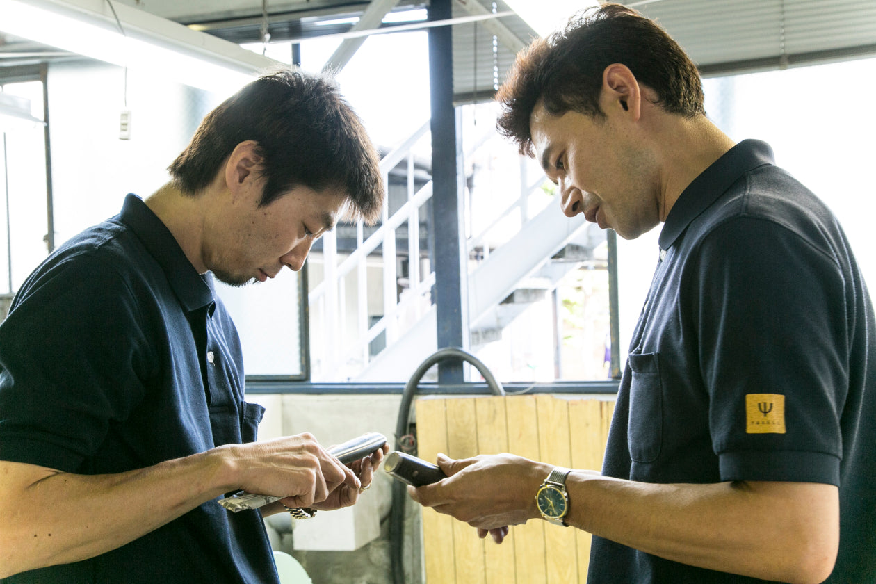 関の包丁製作には30以上もの工程があり、古くから地域にまたがる分業体制が確立されています。ヤクセルも多くのパートナー企業や職人さんとの協業に支えられていますが、刃付けや磨きなどの大切な部分は内製。手仕事で信頼の品質を守っています。