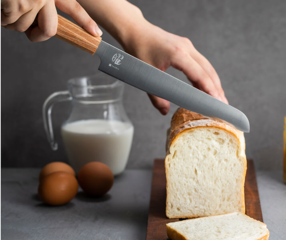 誰かに贈りたくなるパン切り包丁です以前は持ち手も刃も細めのパン切り包丁を使用していました。曜のパン切り包丁はまず持った時の安定感と安心感が違います。食パンは意図した通りの厚みで真っ直ぐ切れるので、毎回感激しています。フランスパンの硬い皮が崩さず切れるのもうれしいです! ナチュラルな白木の持ち手は、キッチンやテーブルに出しても明るく、食事風景としても違和感がありません。持ち手も握りやすく、誰かにプレゼントしたくなる包丁です。(30代・女性)