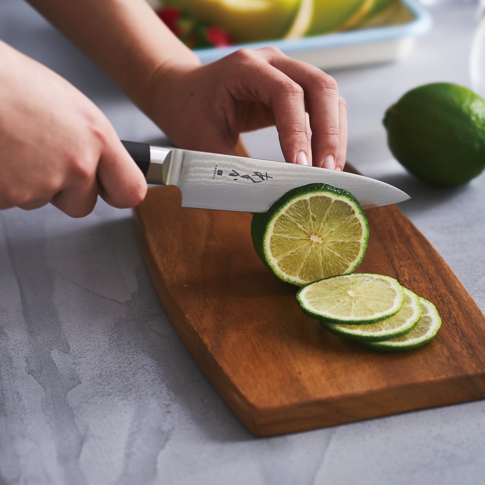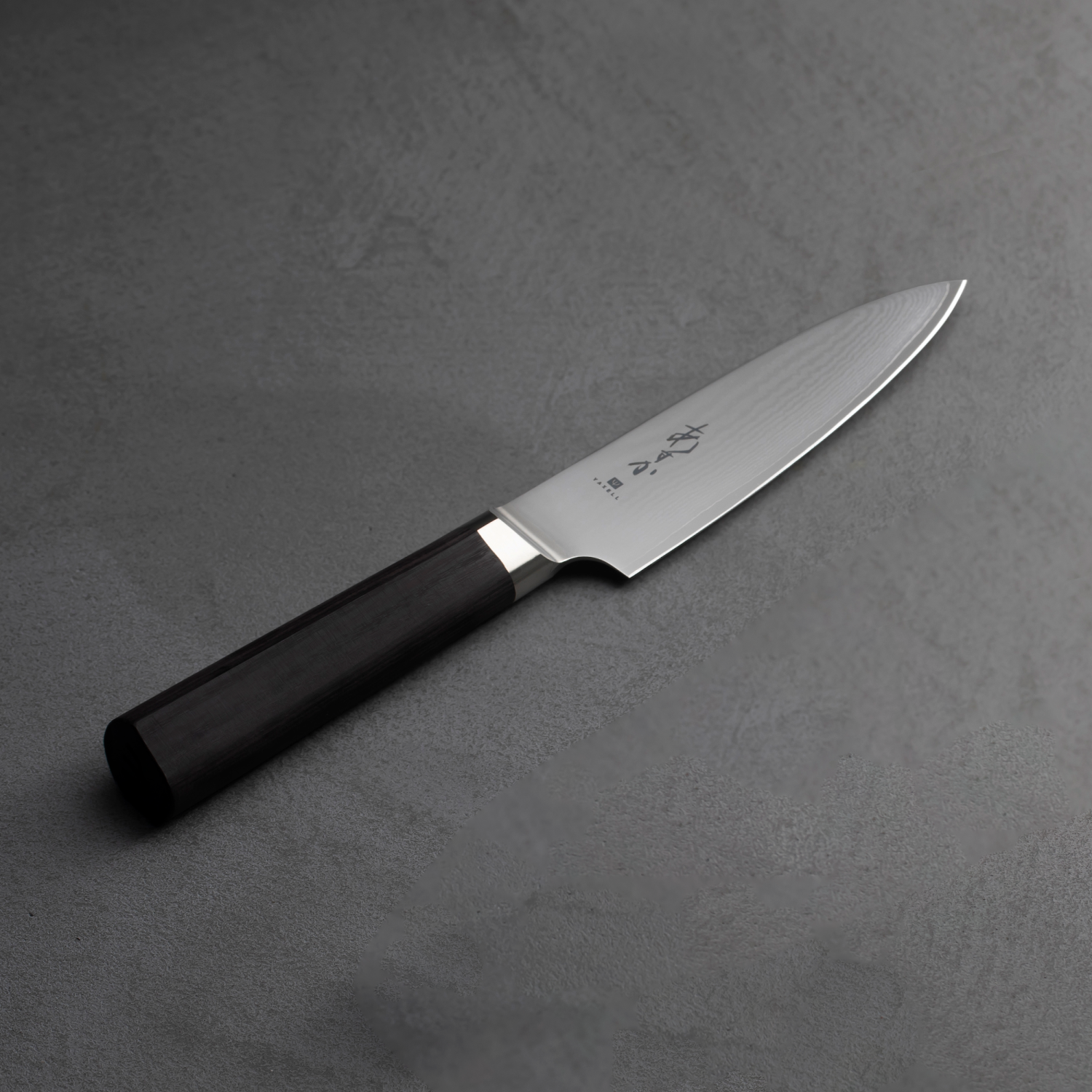 刃渡り13cmのペティナイフ。フルーツなどにはもちろん、小回りがきくので忙しい朝のお弁当づくりや肉・魚を切ることにも使えます。同シリーズで三徳包丁、牛刀もご用意しています