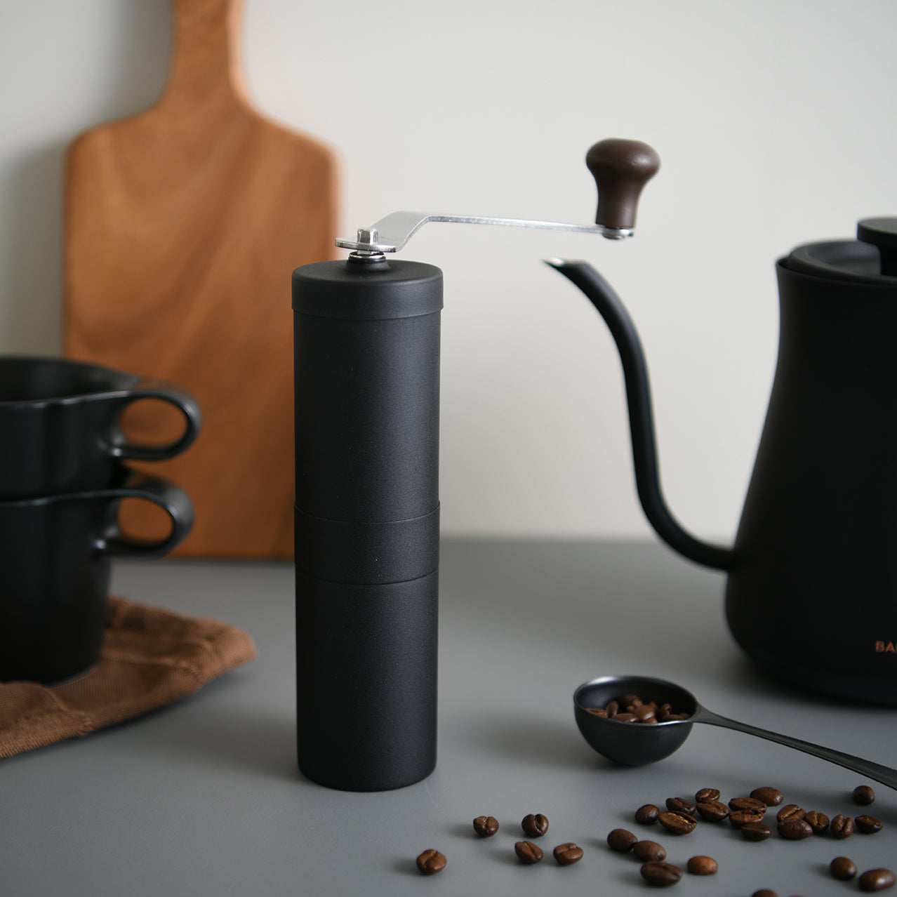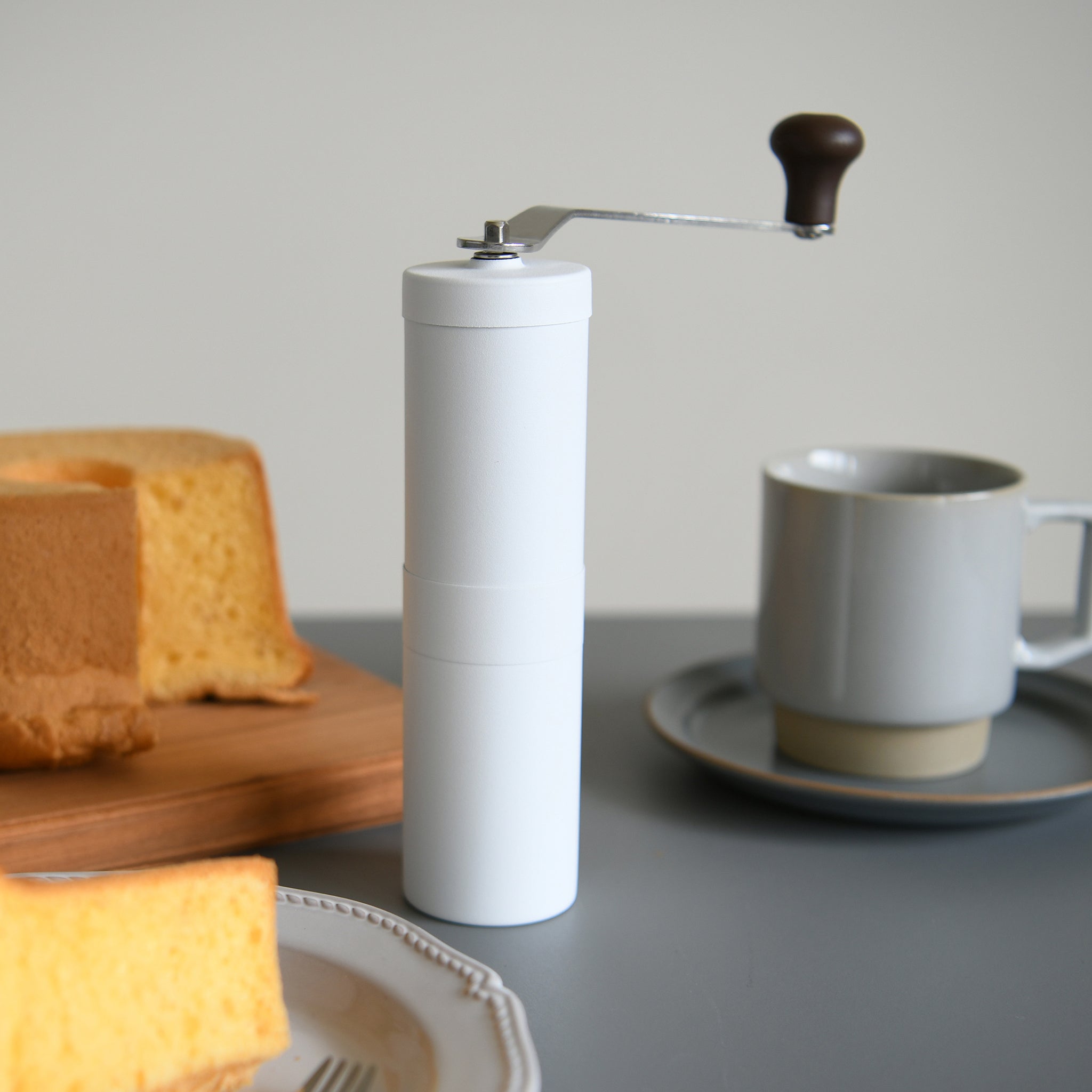 ブラック、ホワイト、シルバーの3色展開。手動のコーヒーミルです。