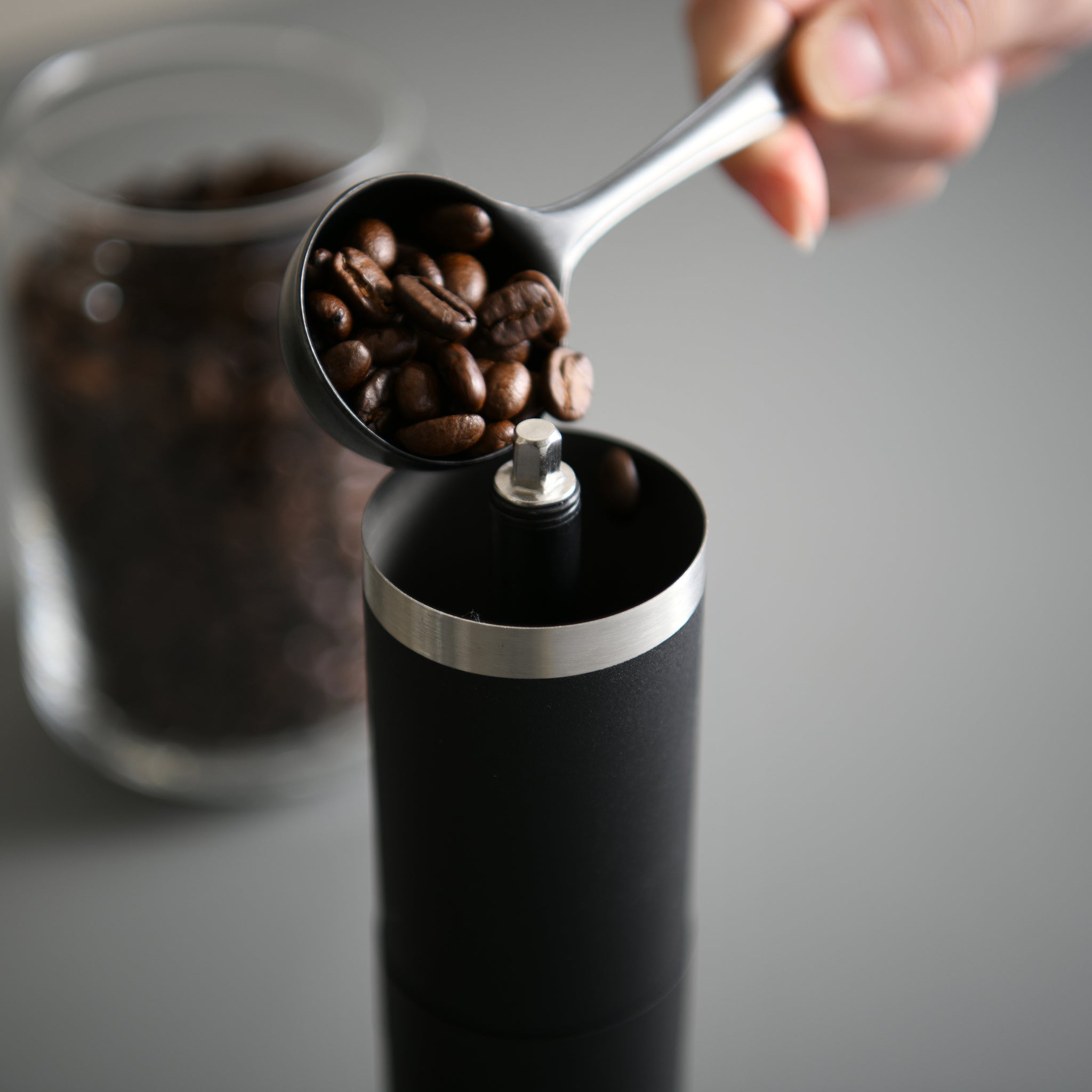 握りやすい丸みのあるグリップと、ロングハンドルの採用により、軽い力で効率的にコーヒー豆を挽くことができます。