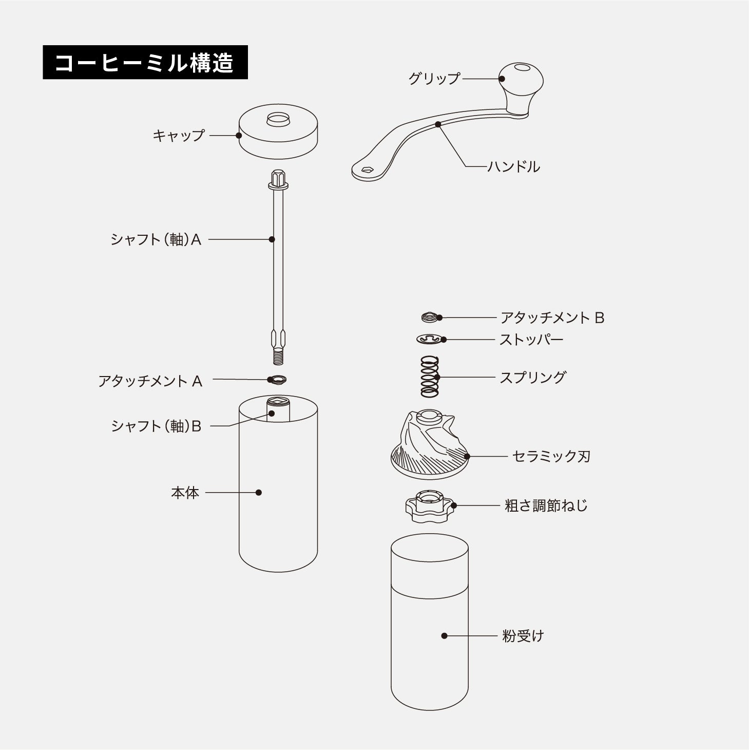 コーヒーミルの刃にはセラミック刃を採用しており、耐久性が高く、長期間の使用でも刃の劣化が少なく、長くお使いいただけます。