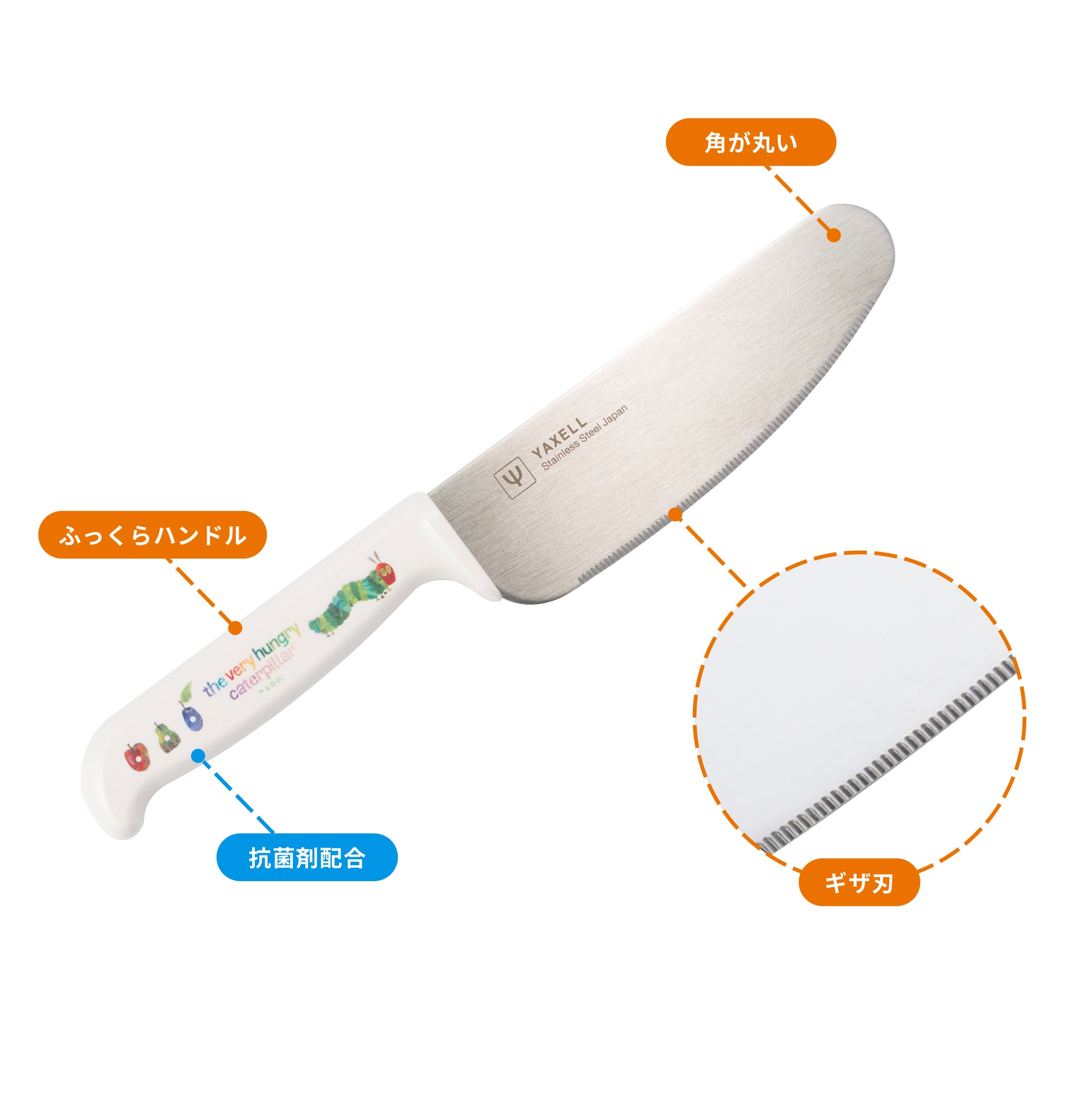 ・ふれても安全なギザ刃で、前後にノコギリのように動かし、柔らかい食材を切ることができます。