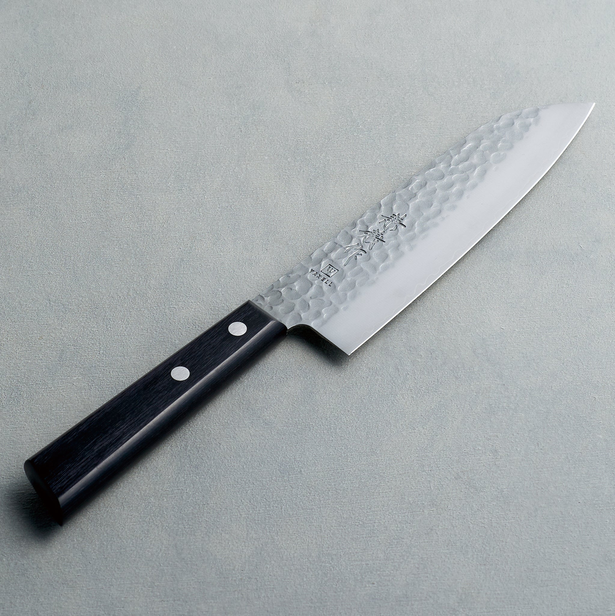 刃渡り16.5cmの三徳包丁。肉・魚・野菜など幅広く使え、日本で一般的に使われている包丁がこのタイプです。同シリーズでシェフナイフ、ペティナイフもご用意しています。
