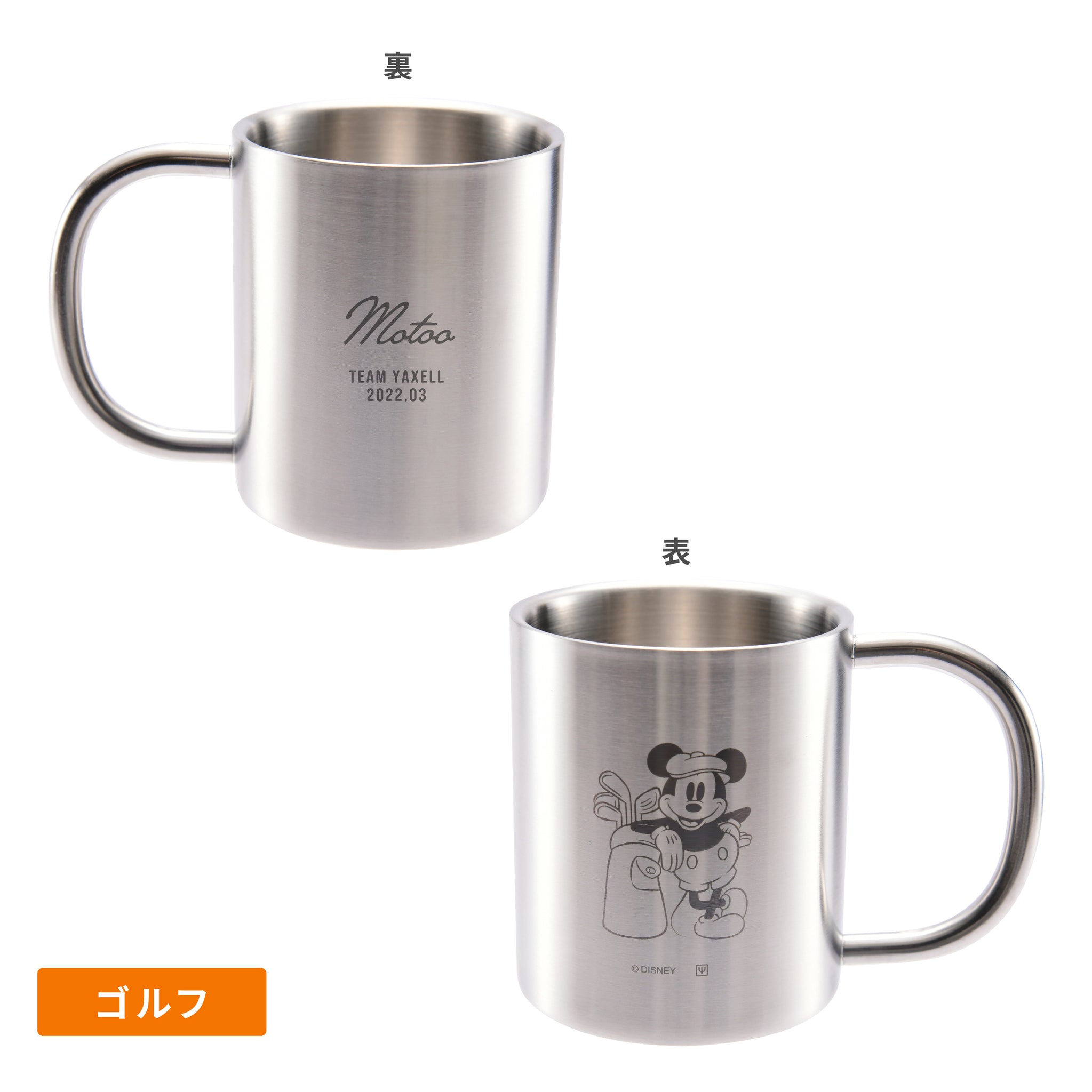 ミッキーのレーザーマーキングがされた、ステンレス2重マグ。