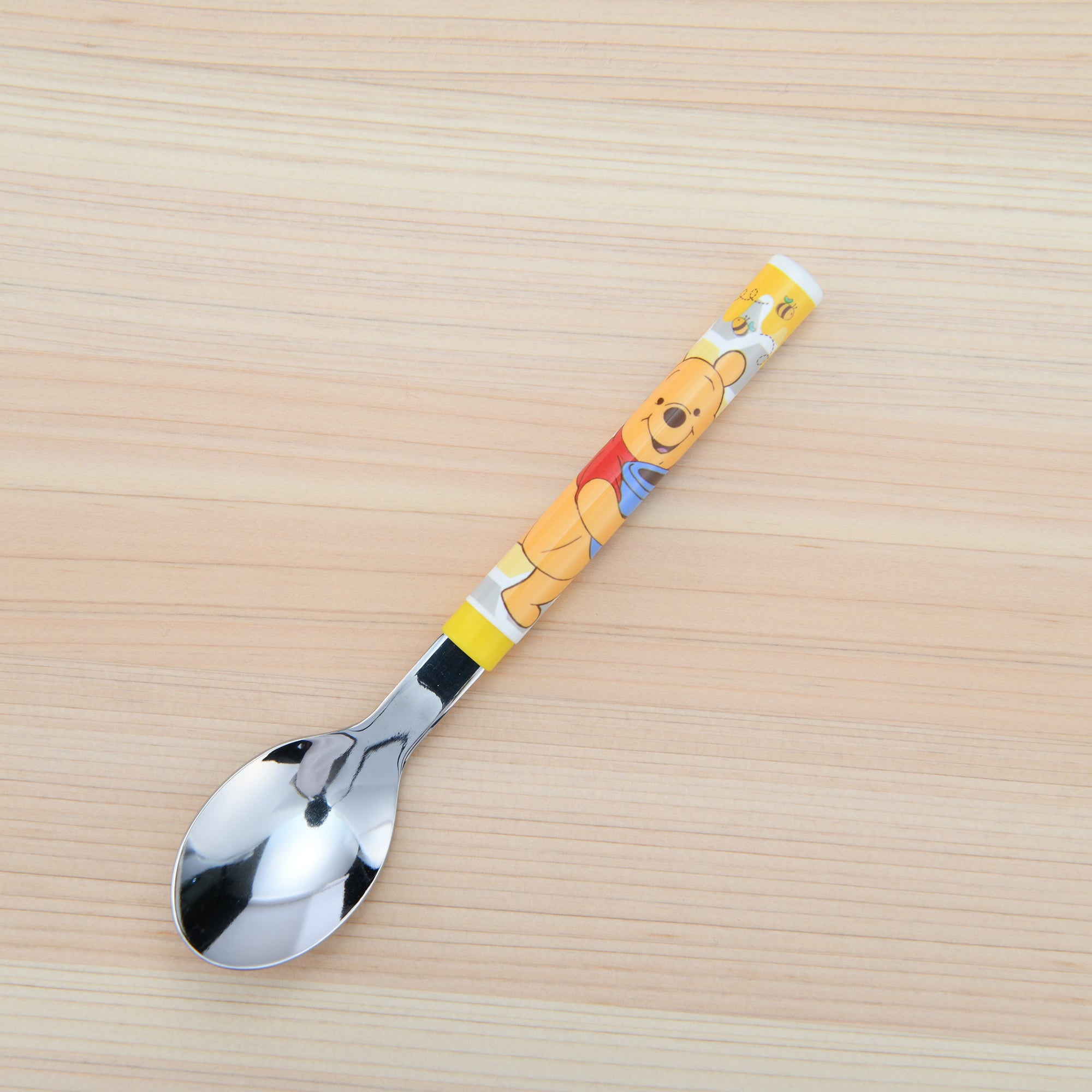 ヘッドがステンレス製のスプーンです。ステンレスは色移りや匂い移りがないのが特徴です。お子さまにはお食事用として、大人にはデザート用として最適なサイズです。