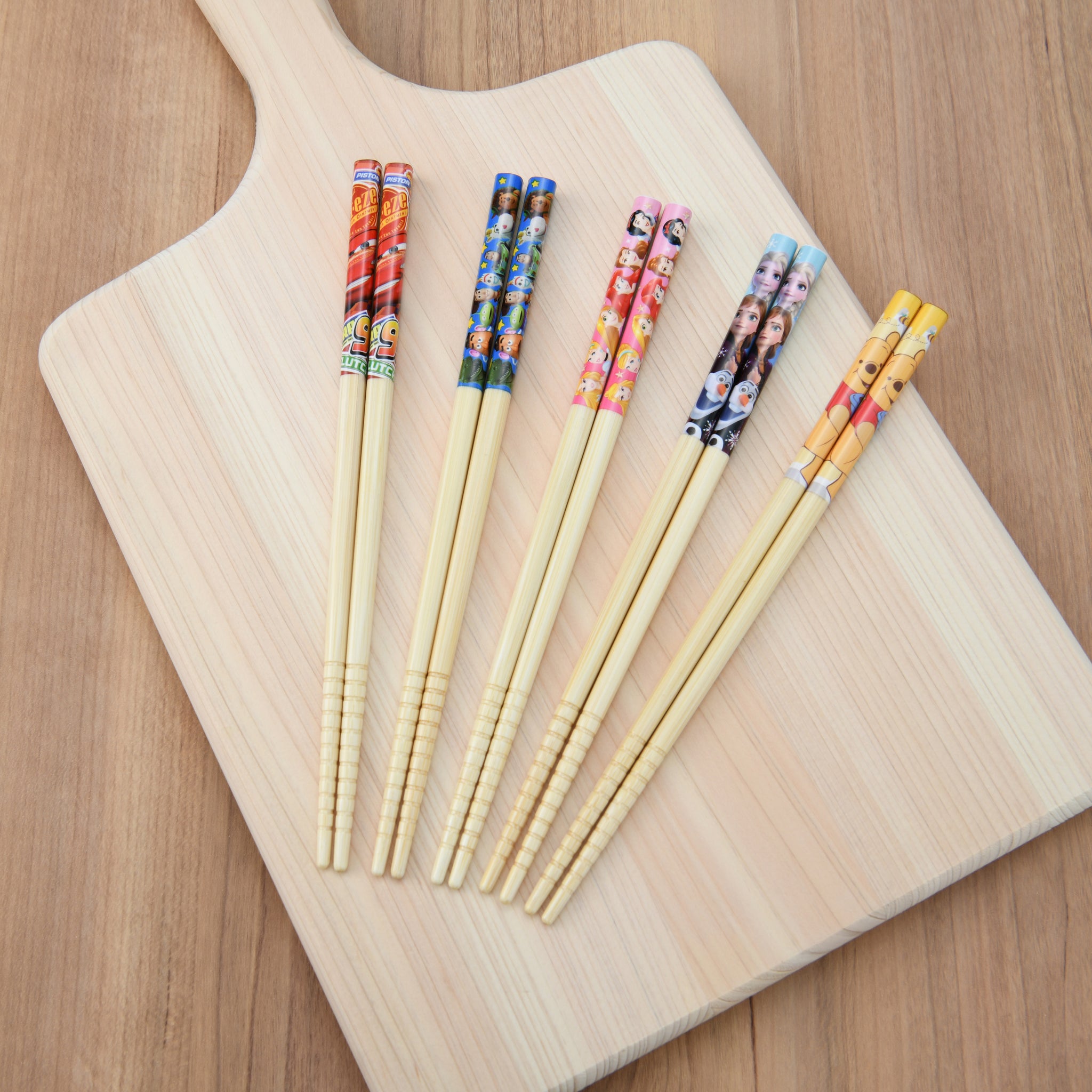 キャラクターは全部で5種類!お茶碗、お椀、ランチプレート、お箸、スプーン、フォークをご用意しています。