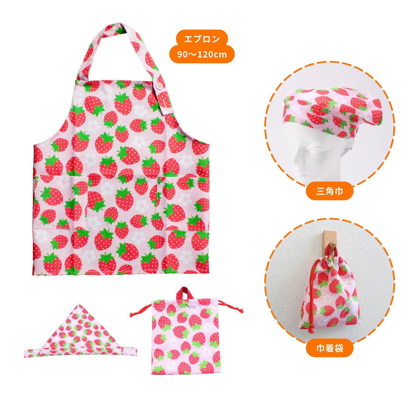 エプロン、三角巾はマジックテープなので、お子様ひとりでも簡単に脱ぎ着ができます。