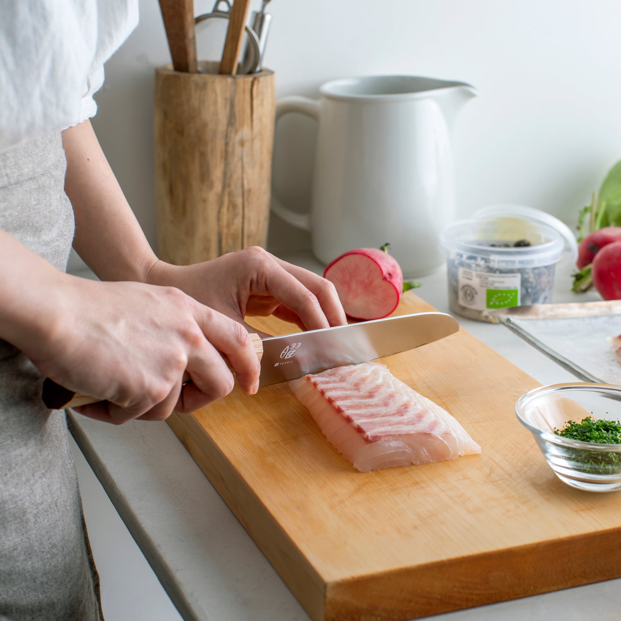 日常のお料理に最適な、適度な刃渡りの包丁です。シンプルで無駄のない形状は初めて高級包丁をお使いいただく方にもおすすめです。