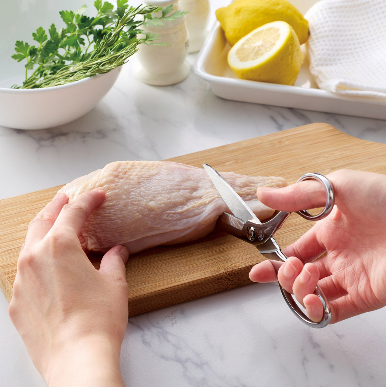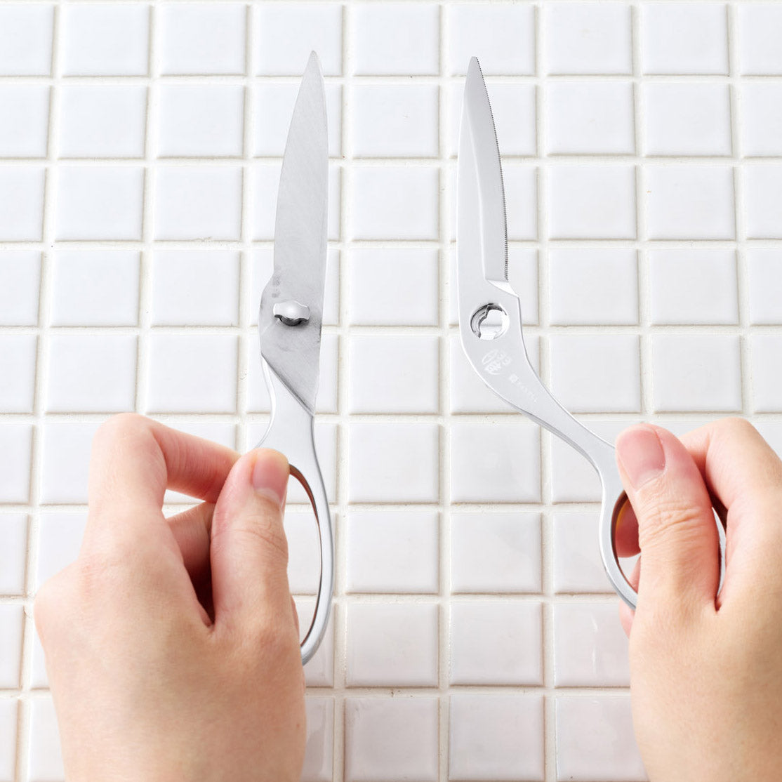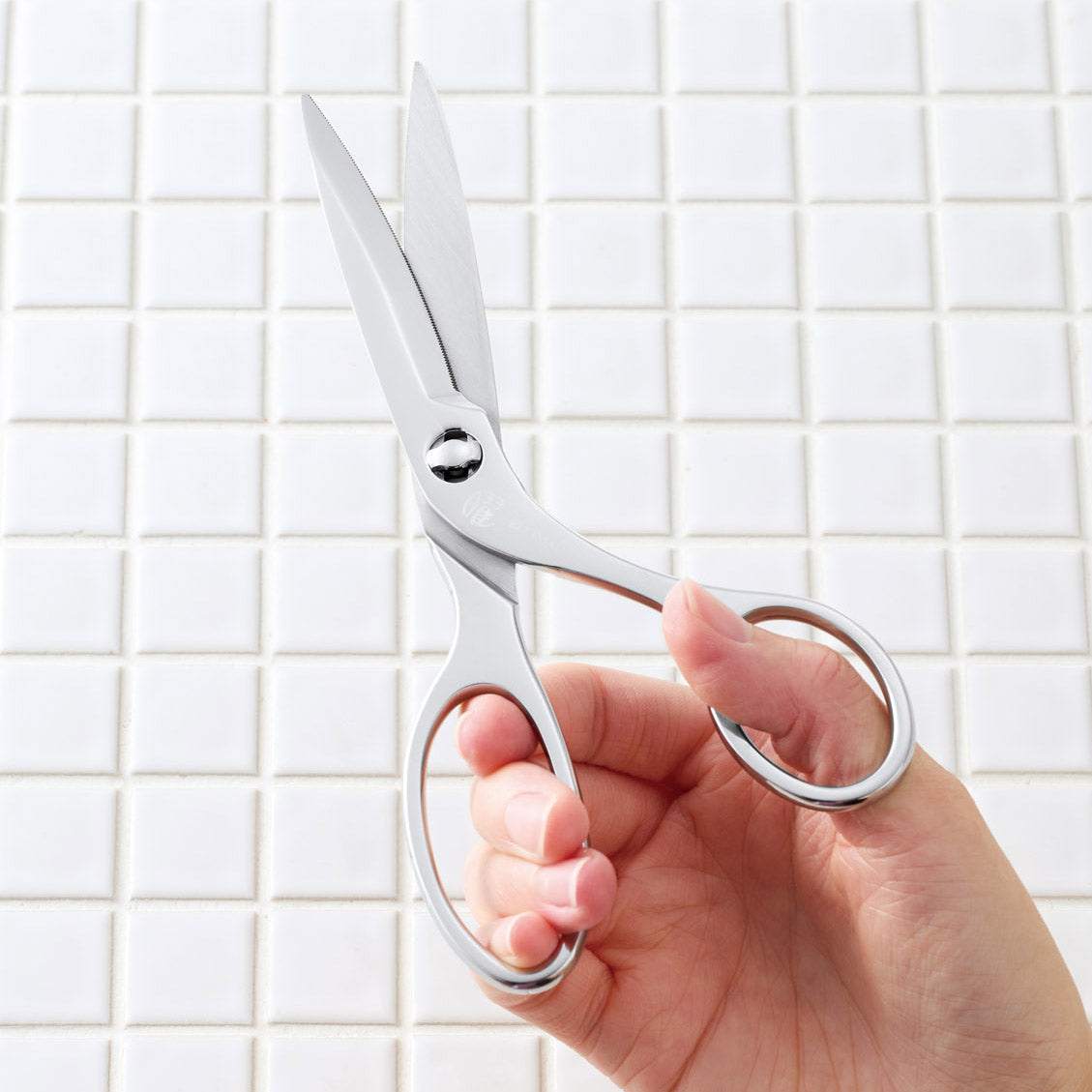 熟練のはさみ職人が一本ずつ丹精込めて刃付けと調整を施し、驚くほどの切れ味を実現。刃に波刃加工が施されているため、肉や魚もスムーズにカットできます。