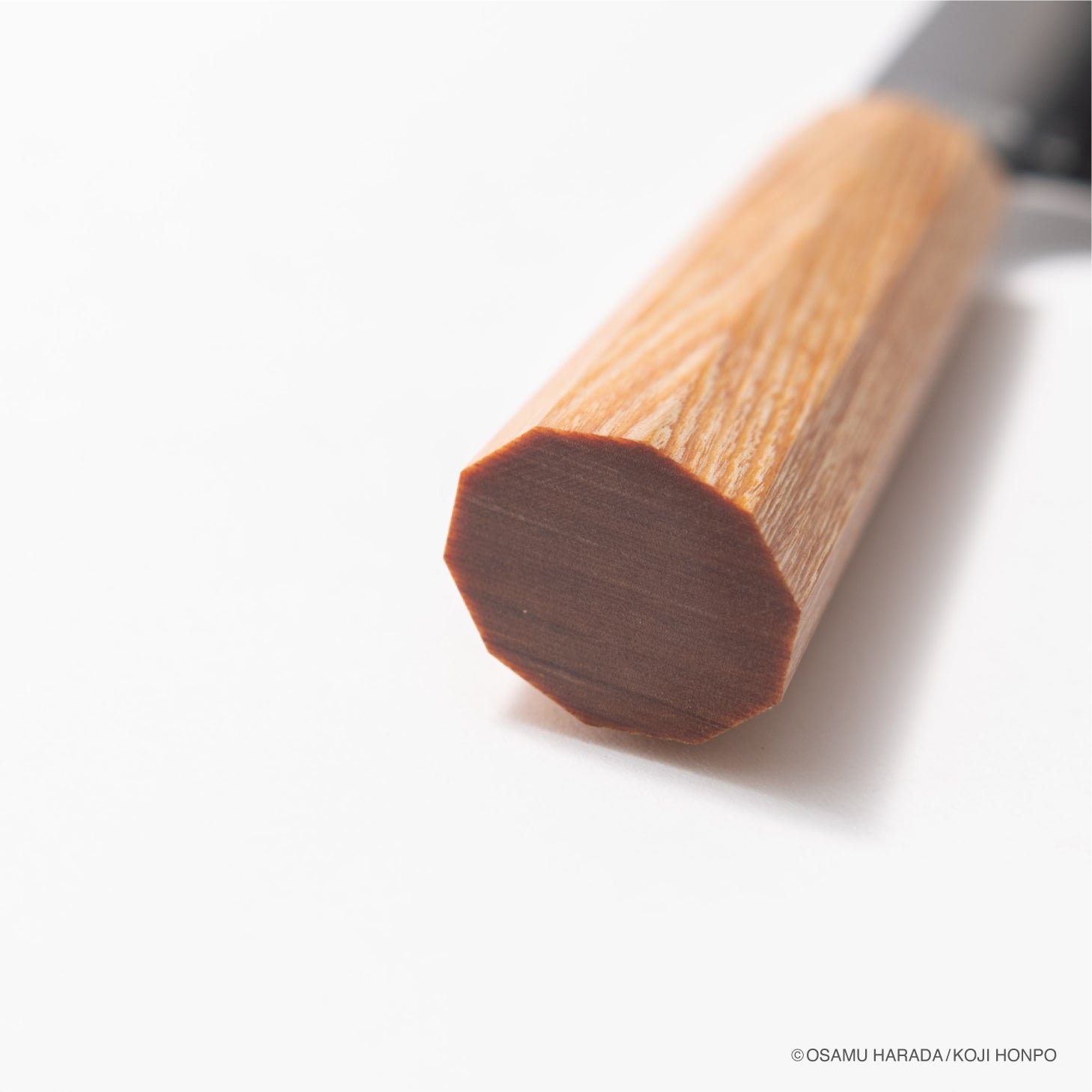 ・水に強く、汚れにくい積層強化木。お手入れしやすく、経年劣化も少ない素材です。同シリーズで三徳包丁、牛刀、ペティナイフもご用意しています。