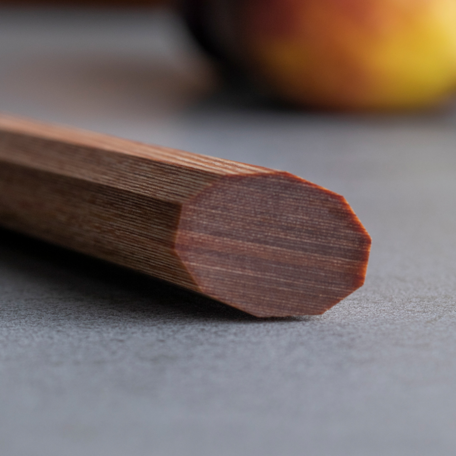 ・水に強く、汚れにくい積層強化木。お手入れしやすく、経年劣化も少ない素材です。同シリーズで三徳包丁、牛刀、ペティナイフもご用意しています。