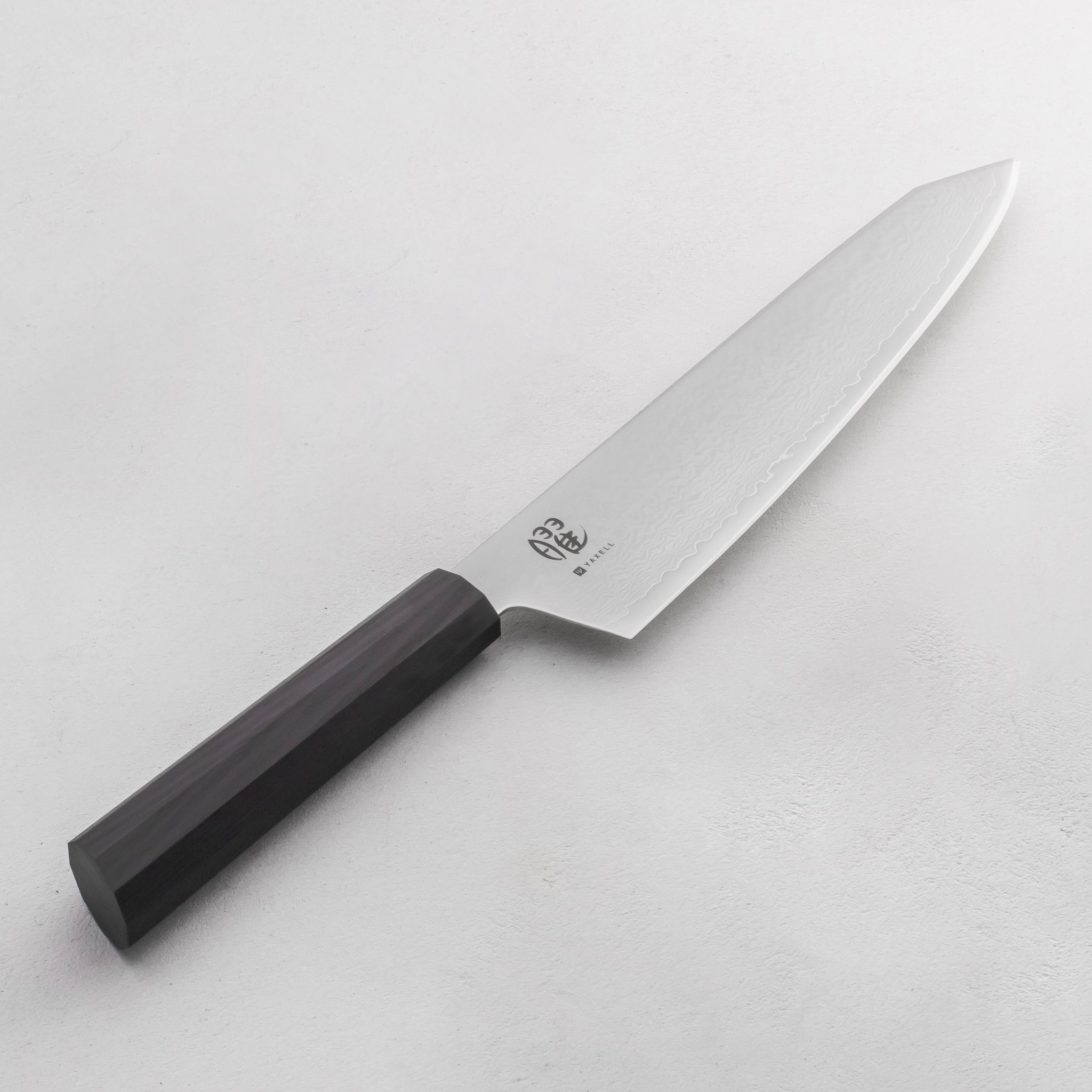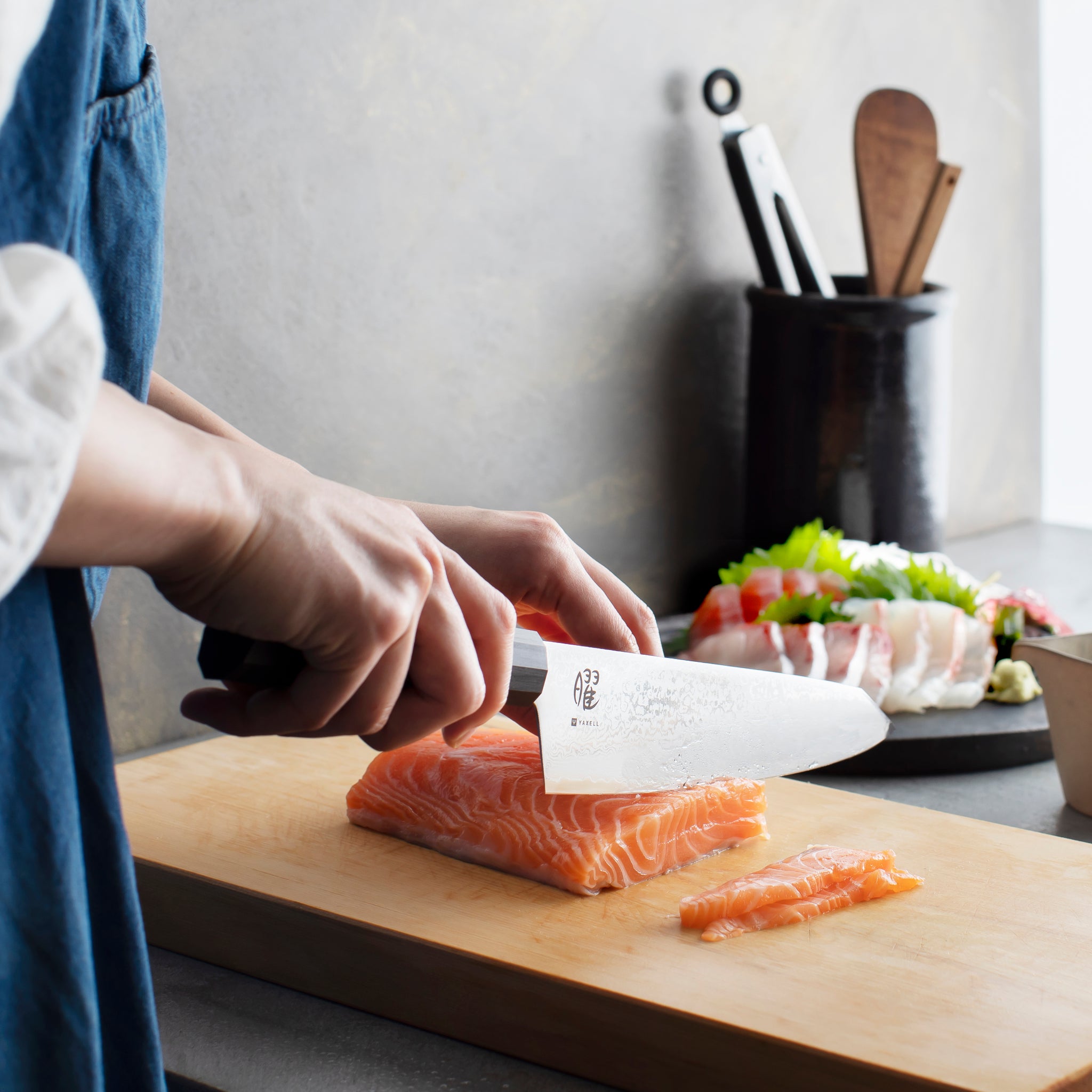 長めの刃渡りと鋭利な剣先形状は肉、魚さばきに最適です。特別な日の、おもてなし料理作りにもふさわしいプロ仕様の包丁です。